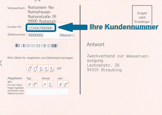 Ihre Kundennummer besteht aus 10 Stellen und ist auf der Ablesekarte enthalten.