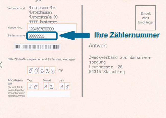 Die Zählernummer können Sie ebenfalls der Ablesekarte entnehmen.